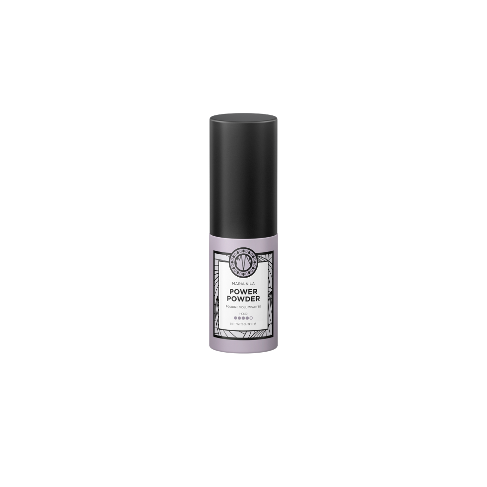 A styling powder that gives long-lasting matte texture and high-volume feel. The powder gives as much volume to fine hair as thick and works great for both long and short hair. Perfect for fixing braids and hairstyles and can be used as an alternative to wax for a less polished result. The volume can be reactivated throughout the day by working your hand through your hair. In comparison to the Maria Nila Cleansing Powder, the Power Powder adds more volume and texture, and is less absorbent.